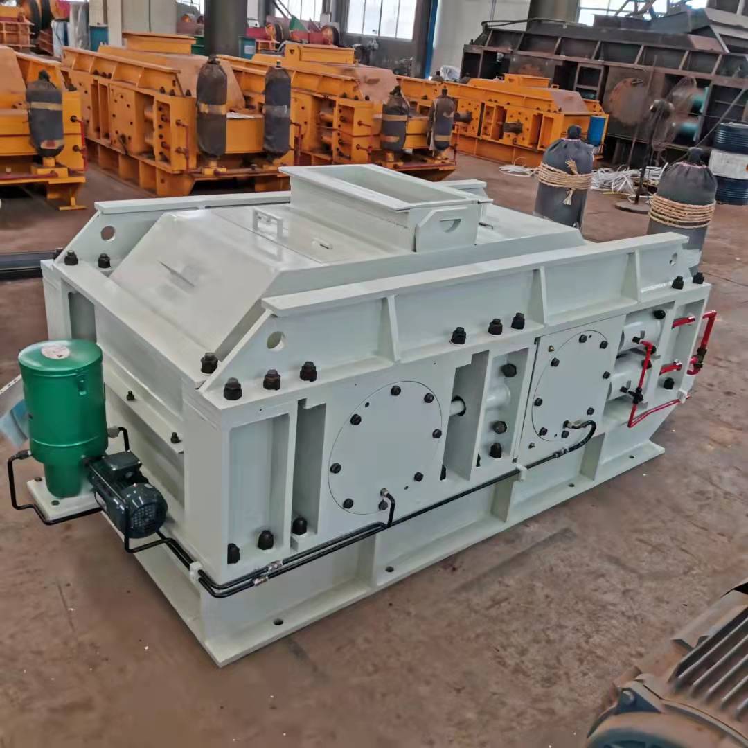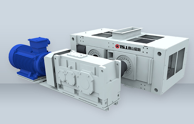 該機工作原理與輥壓機相近,采用了料層擠壓破碎的理念,其主體是由一對相互平行、水平安裝的圓柱形輥子組成,分別由兩套彼此獨立的動力裝置驅動。當這對輥子做相向運轉時,進入喂料口的物料受到輥子的擠壓、沖擊、磨削而細碎,并隨自身重力被旋轉的輥子甩出,向下卸落。