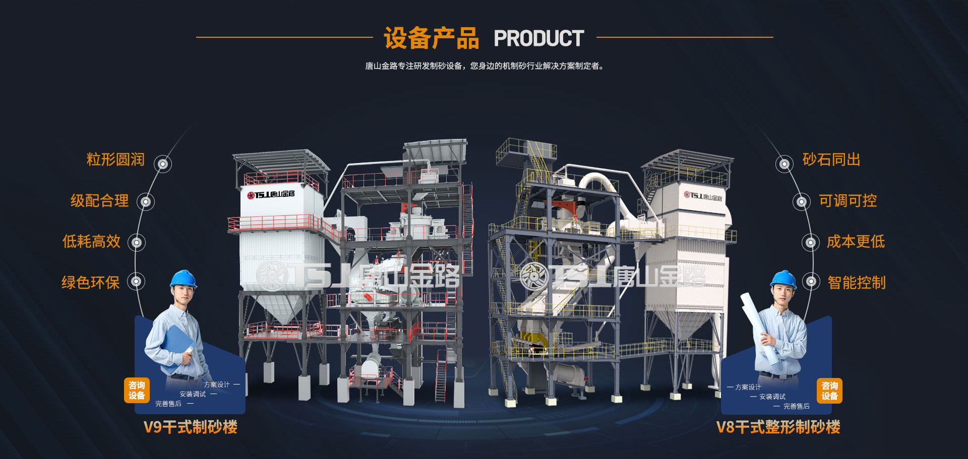 唐山金路作為一家集研發(fā)、生產(chǎn)、銷售、服務(wù)于一體的制砂機(jī)械設(shè)備企業(yè),一直致力于環(huán)保型破碎制砂設(shè)備的研發(fā)與生產(chǎn),現(xiàn)建有年產(chǎn)100萬噸的機(jī)制砂生產(chǎn)實(shí)踐基地。公司自主研發(fā)的V8干式整形制砂樓、V9干式制砂樓,具有綠色環(huán)保、能耗低產(chǎn)量高、智能控制等特點(diǎn),產(chǎn)出的機(jī)制砂級配合理、粒形圓潤,是制砂生產(chǎn)企業(yè)的理想產(chǎn)品。